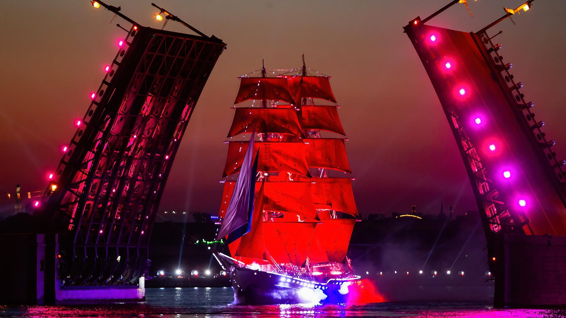 Украшением праздника станут лучшие виды Северной столицы. И это тоже символично: как будто во взрослую жизнь выпускников провожает сам город-герой Ленинград, мегаполис Санкт-Петербург. И конечно, громада алых парусов брига "Россия", с появлением которого будут загаданы миллионы заветных желаний. Все это ждет главных героев праздника уже завтра.